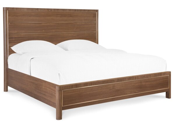 This King California panel bed features wide picture frame molding and wood strip onlays for added dimension. The design is completed with a low-profile footboard, framed center panels, and bolt-on rails.