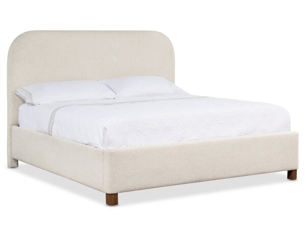 A warm twin upholstered bed in 100% linen (Broadway Coffee) featuring a fully fabric-wrapped frame and scalloped base for vintage-inspired charm. Includes headboard, footboard, and rails.