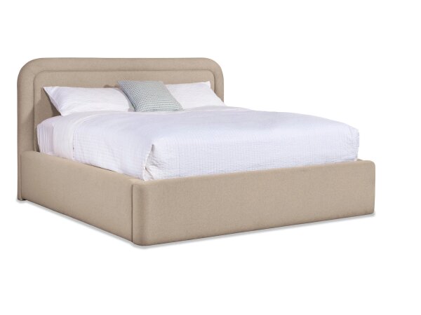 A twin upholstered bed in 100% linen (Broadway Dune) with a fully upholstered frame and scalloped base for timeless, traditional style. Includes headboard, footboard, and rails.
