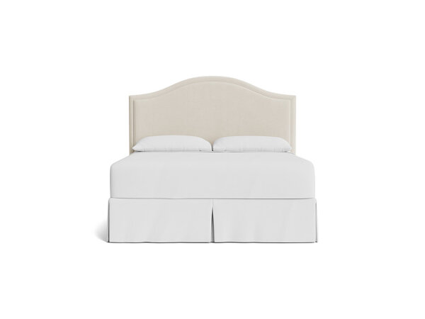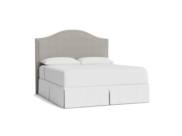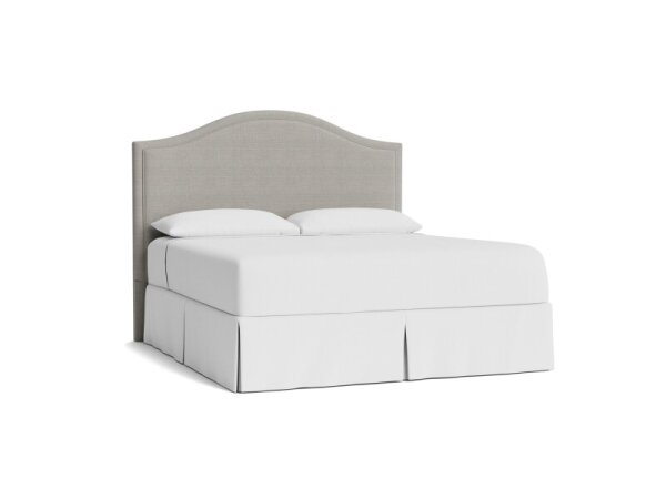 Custom upholstered bed or headboard with a classically curved camelback silhouette, tailored in your choice of fabric and offered in sizes from Twin to California King.
