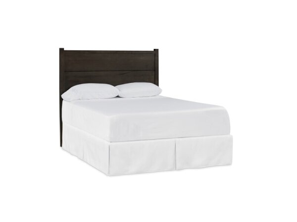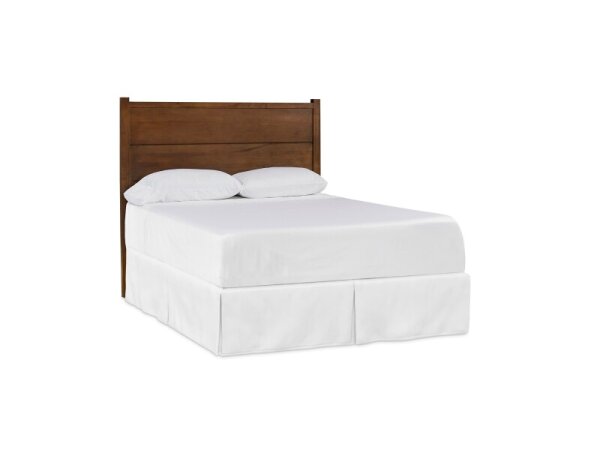 California king panel bed in a Classic Walnut finish over figured cathedral walnut veneers with tapered legs, including headboard, footboard, and rails. Headboard may be used alone for versatility.