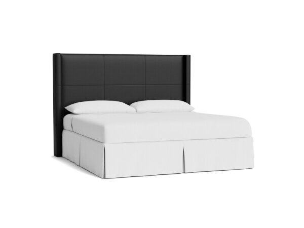 Customize this leather upholstered bed as a headboard or complete bed frame. Optional in-store detailing includes tufting and nailhead trim; offered in sizes from Twin to California King.