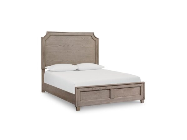 Neo-traditional wood panel bed design with modern lines for any bedroom. Offered in Chalk Slate or Shell White.