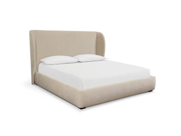 Customizable upholstered wing bed with a built-to-the-floor frame and softly curved side and end rails. Upholster in fabric or leather and choose from all bed sizes.