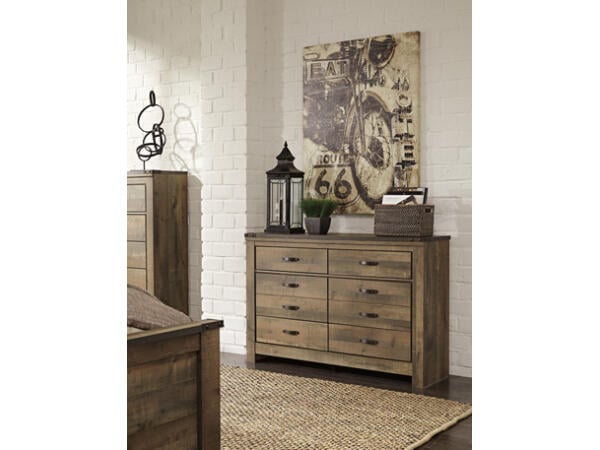 With its clean-lined look and modern attitude, this dresser is a fresh style awakening. A warm charcoal hue over replicated