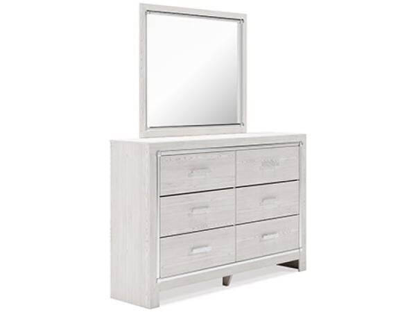 With its clean-lined look and modern attitude, this dresser with mirror is a fresh style awakening. A crisp, white hue