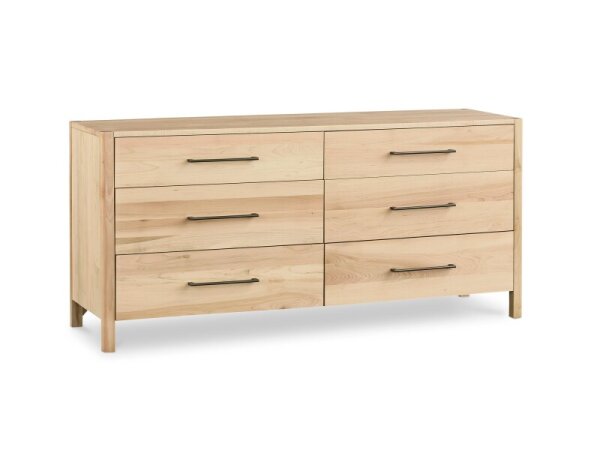 Handcrafted solid silver maple 6-drawer dresser with deep soft-close drawers for ample bedroom storage. Clean, modern lines and a spacious top add versatile style.