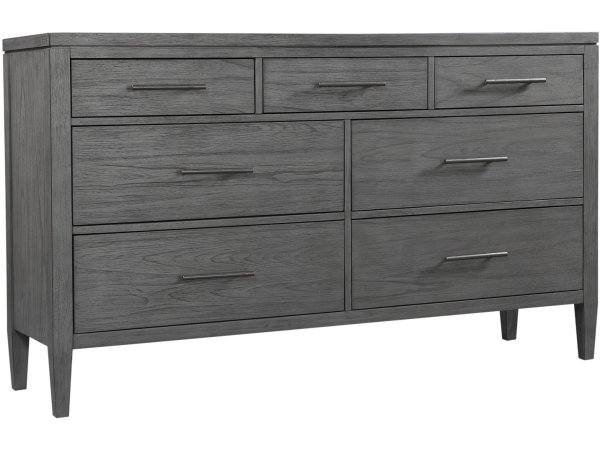 This Paradise Valley chesser is made from Rubberwood solids and Split Heart White Oak veneers with a Saddle Brown finish. It features ten soft-closing drawers, including felt-lined top drawers and cedar-lined bottom drawers, offering versatile storage.