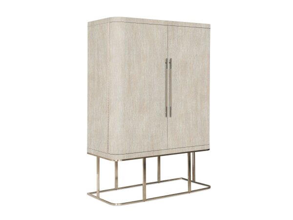 Modern wardrobe in Diamond-finished Oak veneers with a shaped metal base and a mirror-backed right door. Includes six self-closing drawers, two adjustable shelves, a removable clothing rod, and jewelry storage with hooks and felt-lined trays.
