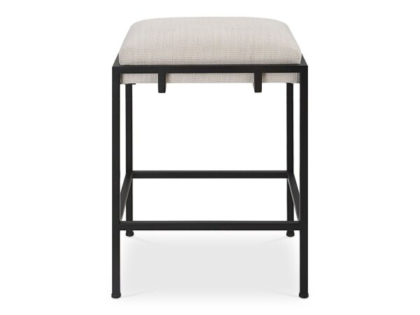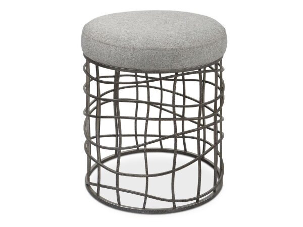 Crafted from rubberwood solids, this upholstered console stool features a padded 100% polyester grey linen seat. It includes tapered legs with a Driftwood finish and nylon glides to protect flooring.