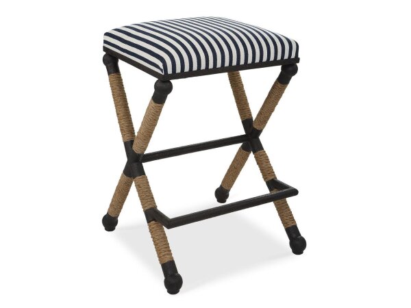 This console stool is crafted from pine solids with a distressed Riverstone White finish and features a planked wooden seat. It includes block legs with nylon glides to protect your flooring.