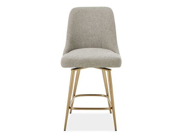 This Mill Creek console swivel stool features durable rubberwood solids with a Peppercorn finish and a Cream Linen upholstered padded seat with return swivel. Nylon glides protect your flooring.