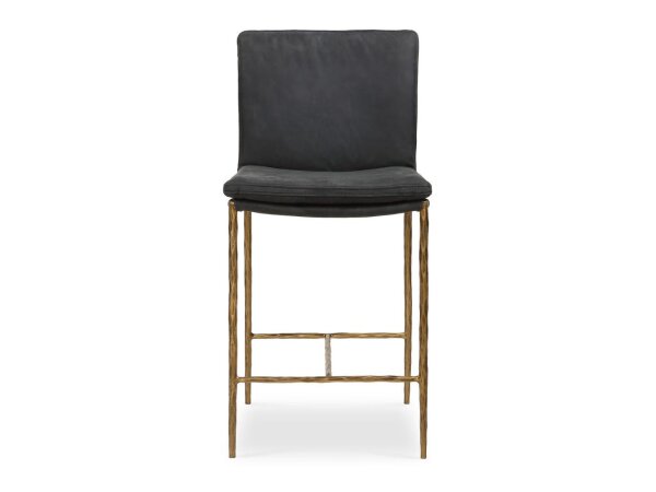 This slat back counter chair features a comfortable padded seat with Grey Linen upholstery. It is designed with square tapered legs and a footrest for added comfort.