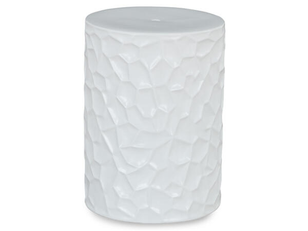 Become enamored by the bold curves of this accent stool. A white glaze gleams against the dynamically designed ceramic piece,