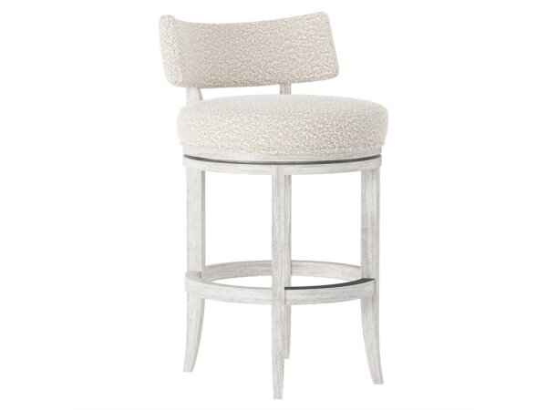 Comfortable and stylish, this transitional bar stool features a round swivel seat and a low, curved back.