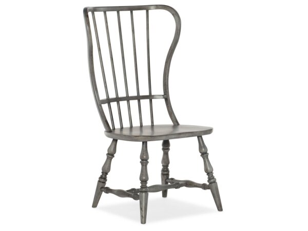 Crafted from rubberwood solids, this Brook Bay slat back side chair features a textured white finish and grey linen upholstery. It includes tapered block legs with nylon glides for floor protection.