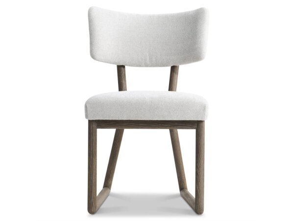 Rake-back host dining chair in a Noir black painted finish with a performance fabric seat in Metal Icicle (white with silver undertones). Wood-resin frame with arms offers supportive seating for the dining room.