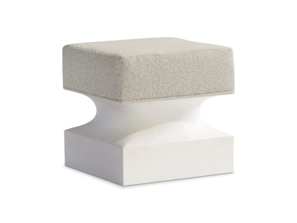 Versatile accent bench with harp-shaped legs, a burnished brass stretcher, and a distressed black finish. Includes a reversible Tuscan White tufted cushion for comfortable seating.
