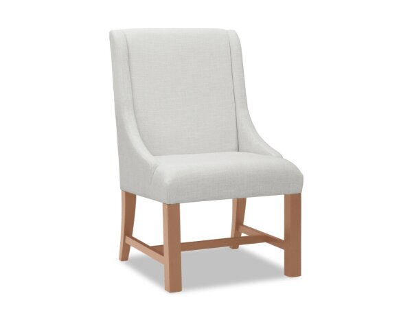 Crafted from Rubberwood solids with a Cappuccino finish, this slat back side chair features a comfort curved cap rail and a padded seat upholstered in Gravel Linen fabric. It includes nylon chair glides to protect flooring.