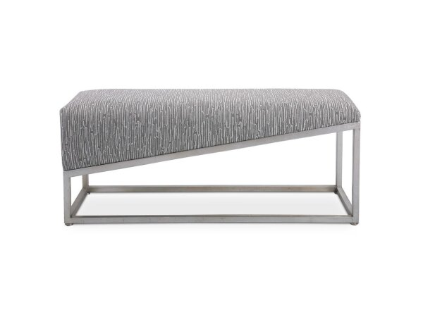 Showcasing sleek angular lines, this bench is the perfect modern accent. The forged iron base is finished in brushed silver