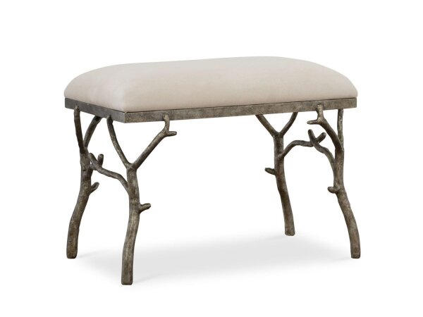 Make a whimsical statement with this molded branch accent bench featuring a heavily textured antique silver finish, tailored in an