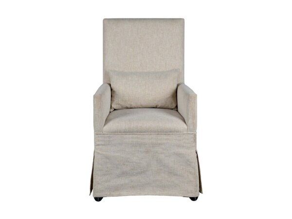 The Newport dining bench, crafted from rubberwood solids, features a Smokey Grey finish and a comfortable upholstered Grey Linen seat. Designed for stability with a center trestle and square block legs with wooden peg accents, it also includes nylon glide