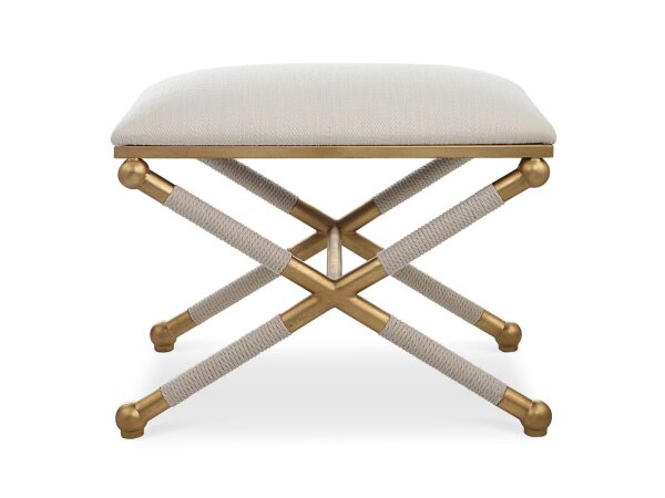With classic simplicity, this small bench features a smooth iron base finished in an elegant gold leaf with braided white