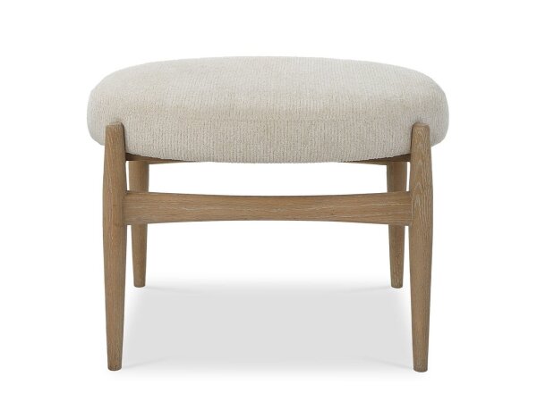 Taking cues from Scandinavian design elements, this small bench features a solid oak base in a natural finish with off