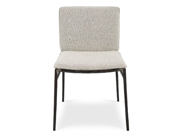 Inspired by contemporary designs, the Jacobsen Dining Chair showcases curved lines with a chiseled iron frame in a natural aged
