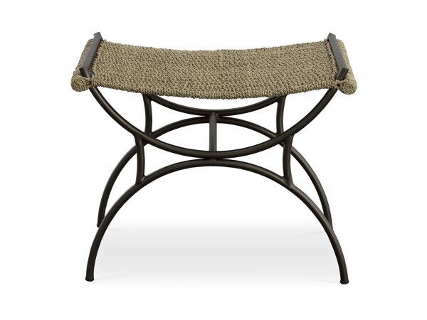 Our Playa Small Bench showcases a handwoven seat made of natural seagrass supported by an elegant curved metal base finished