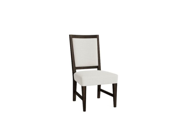 Slipcover-inspired upholstered dining chair on casters for easy positioning, scaled to suit both small and large dining spaces for comfortable seating.