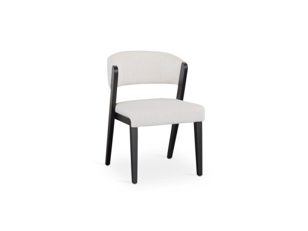 Curved-back faux leather dining chair with a generous seat and solid hardwood frame for comfortable dining or extra living-room seating. Vegan leather upholstery; Natural or Black frame finishes.