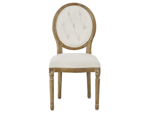 This upholstered, ladder back side chair offers a classic look with its 100% polyester grey linen upholstery. The design is completed with square block legs and protective nylon chair glides.