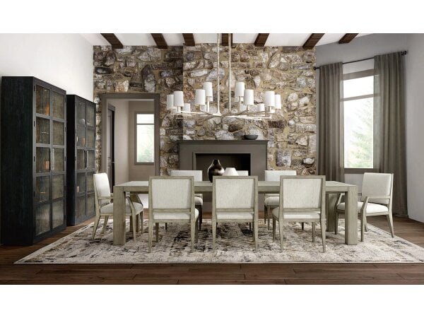 This Paradise Valley upholstered ladder back arm chair is crafted from rubberwood solids with a Saddle Brown finish and distinct traditional styling. It features a padded seat upholstered in tobacco leather-like fabric, shaped scrolled arms, and nylon gli