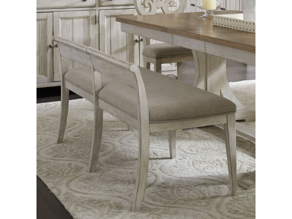 The Tanners Creek upholstered side chair is made with a durable rubberwood solid frame and scratch-resistant melamine in a Greystone finish. It provides comfort with grey tweed upholstery, double bead molding, and tapered legs, equipped with nylon chair g