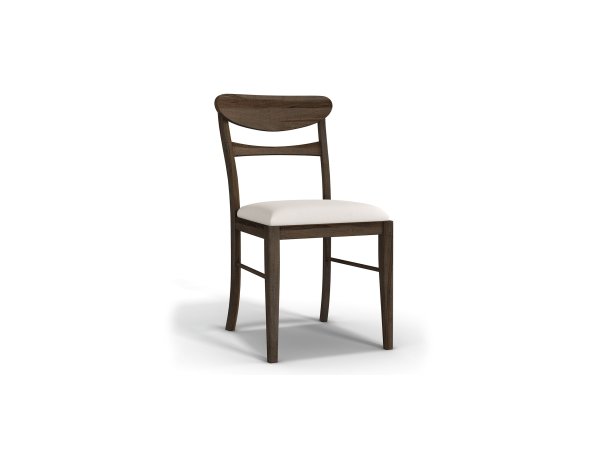 The Tanners Creek upholstered side chair is made with a durable rubberwood solid frame and scratch-resistant melamine in a Greystone finish. It provides comfort with grey tweed upholstery, double bead molding, and tapered legs, equipped with nylon chair g