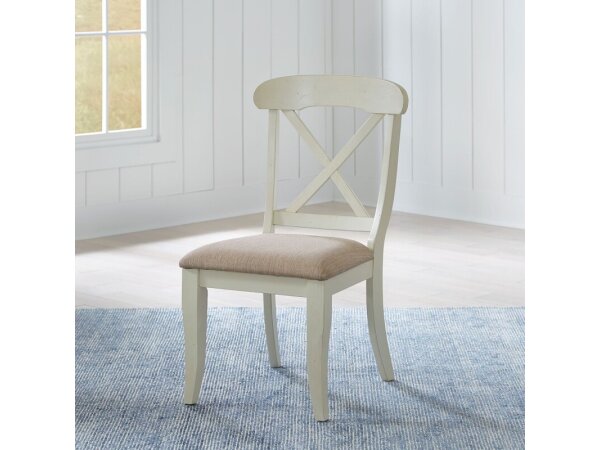 This vintage white X Back side chair offers classic vintage styling with a unique designer look and heavy distressing. It is available in multiple finish options to suit your decor.