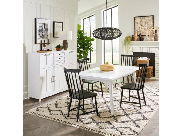 Spindle Back Side Chair - Black (RTA),Rectangular Leg Table - White