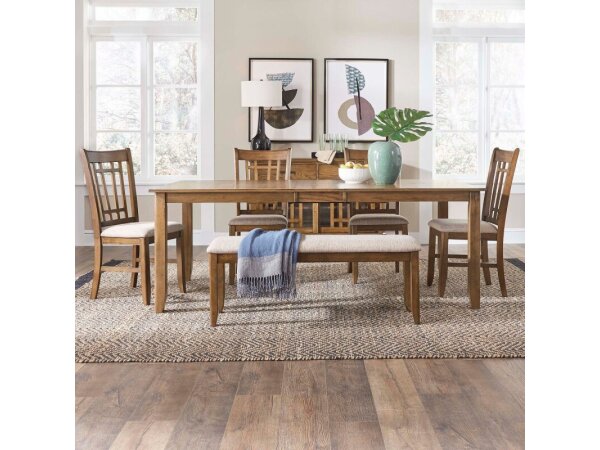 Lattice Back Side Chair,Rectangular Leg Table,Uph Dining Bench