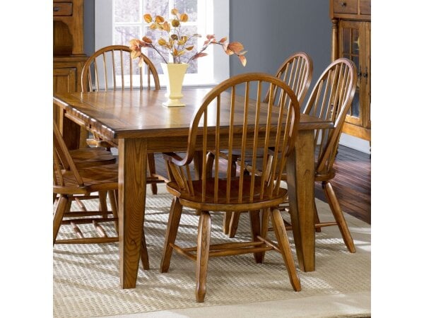Bow Back Side Chair - Oak,Bow Back Arm Chair - Oak,Rectangular Leg Table - Oak