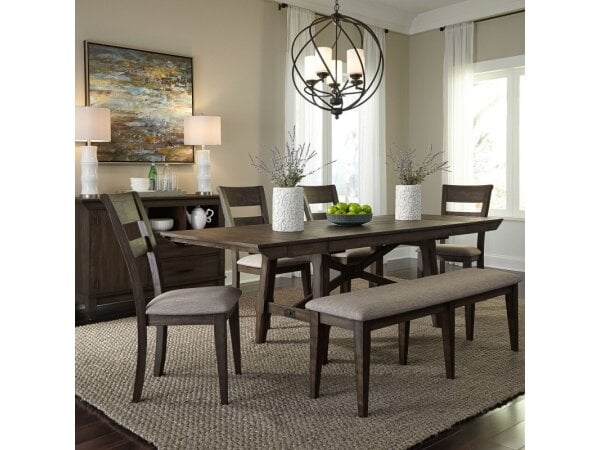 Double Bridge Optional 6 Piece Trestle Table Set
