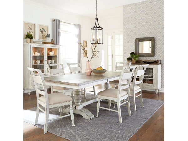 Slat Back Side Chair (RTA),Trestle Table Base,Trestle Table Top