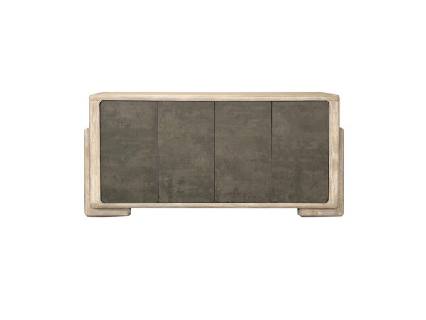 Crafted from a blend of solid and oak veneer, this four door cabinet boasts a bright, natural finish that highlights