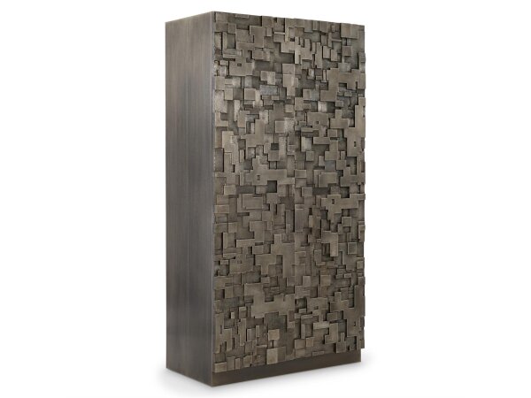 Textured metal gleams against a warm wood on this bold modern buffet.