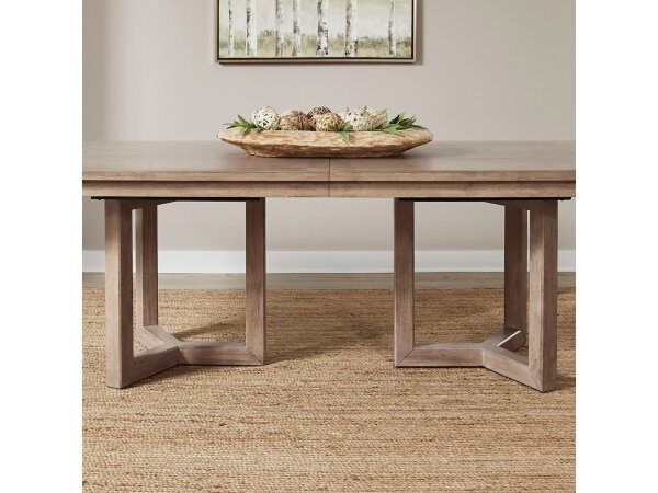 This double pedestal table base provides sturdy support and must be paired with a compatible Shaker Lakes tabletop. It features clean lines with block legs and open slat accents, but cannot stand alone.
