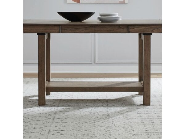 This Santa Rosa pub table base, made of rubberwood solids and oak veneers with an antique honey finish, offers ample storage and display space. It features two drop-down door panels with antique brass hardware, revealing interior storage and an open top s