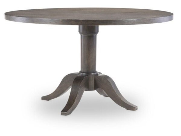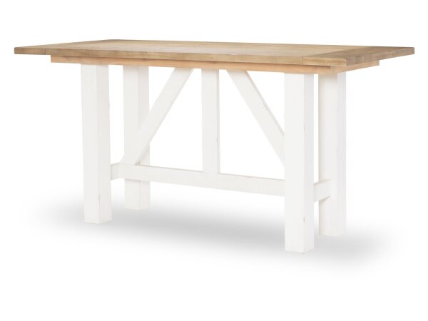 The Allyson Park rectangular leg table, crafted from rubberwood and pine solids with pine and oak veneers, features a wire brushed white finish with a planked charcoal top. It includes a fixed top, two felt-lined storage drawers with full extension glides