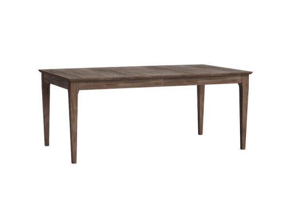 Rectangular wood dining table with a removable 18 in. leaf and farmhouse-style legs, finished to showcase the natural grain. Seats 4–6 (6–8 with leaf).
