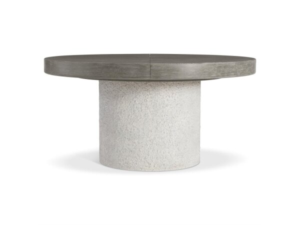 Chic modern styling crafts a unique dining table design with wood, metal and glass.