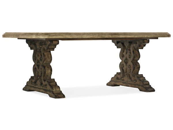 92" (233.7 cm) Casual Dining Vineyard Row Rectangle Dining Table with Two 20-inch Leaves, crafted with attention to detail and elevated through Pecky Hickory Veneers design elements.